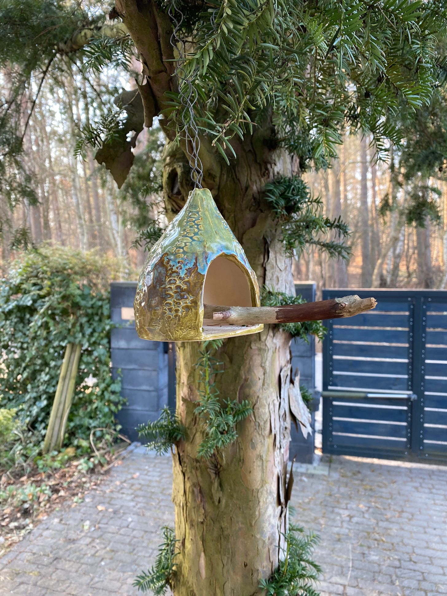 The first was a bird-feeder — I used Mayco Elements glazes and they worked beautifully.3