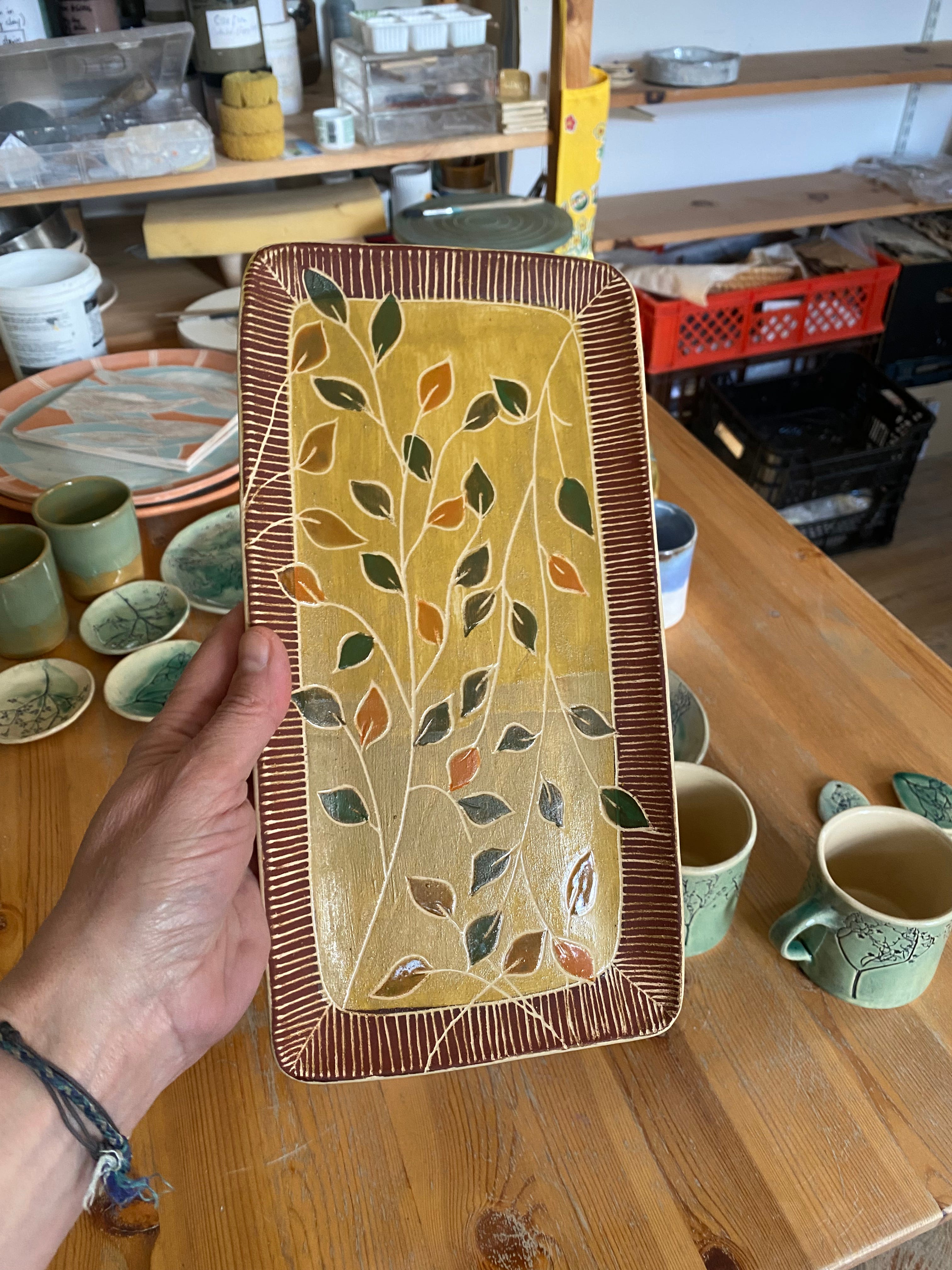 The tray, I really love, but on closer inspection will have to be re-glazed and re-fired to correct unevennesses (is that a word??) in the glaze. I actually listed it on Etsy for a day before quickly taking it down — it will return soon though, hopefully.