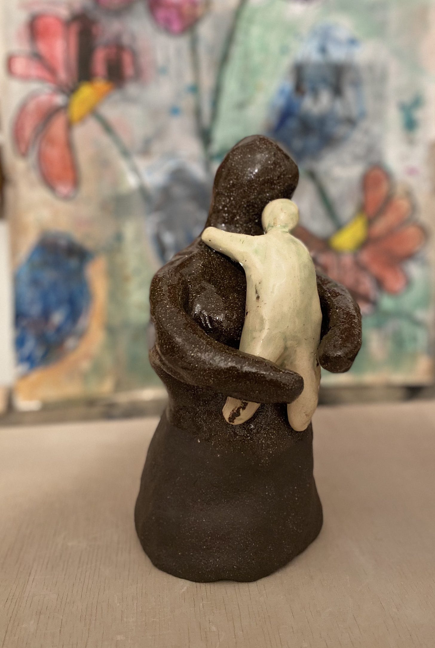 The other piece is the small mother and child sculpture you may have noticed at the beginning of this post. I made it during a workshop, along with Ola, my first ever workshop participant who is becoming a friend. She was pregnant with her second baby and wanted to make a sculpture. She came to the studio in February and we made mother and child sculptures together. It was… therapeutic.