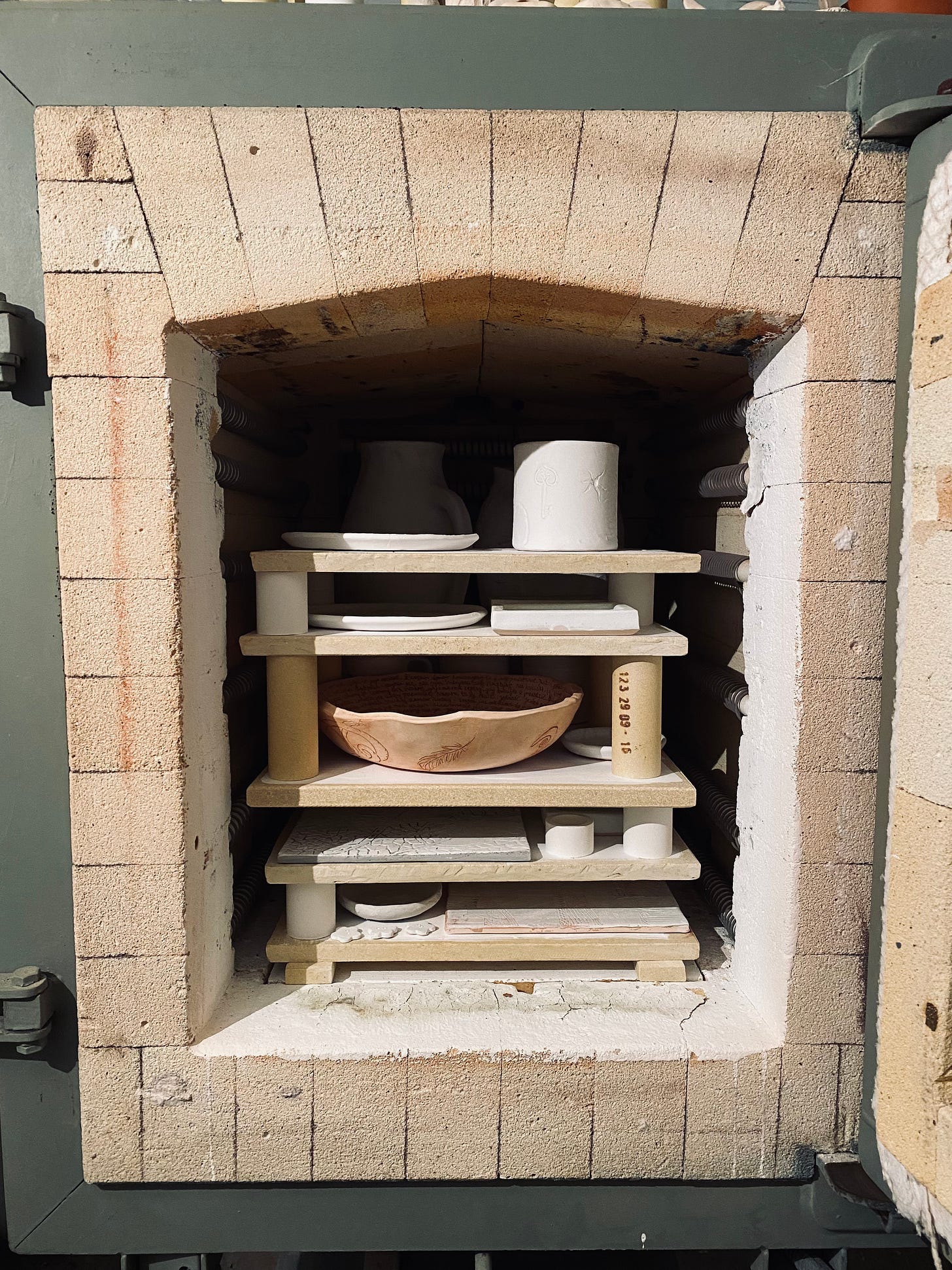 My kiln is particularly slow to cool down — something that used to cause me immense frustration but that I now know is in fact a very good thing.